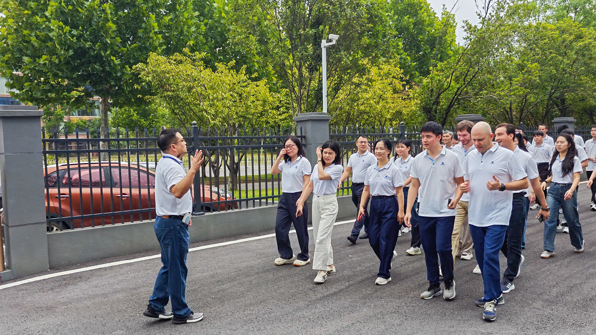 美松集团升旗仪式结束后,销售部谭娟与生产厂务总经理黄杨静带领所有嘉宾及深圳美松同仁参观美松集团智能产业园,回顾美松从创立到发展的美松品牌、美松打印产品、美松品质与美松服务,介绍园区4万平方规模、生产线布局与产能情况,展示公司在智能制造领域的最新成果与持续成长。