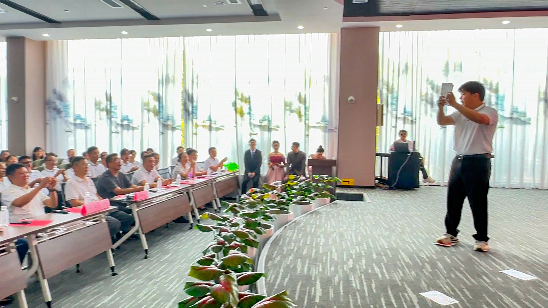 17点30分盛典晚宴,首先由热情激昂的董助coco上台发言,打开了美松人与美松嘉宾们温暖而激情的交流模式。餐桌上的对话、合作的契机在轻松的氛围中展开,情感与商务的界线在这一刻变得模糊而自然。紧随其后的抽奖环节,将整场年度盛典大会的热度推向顶点,现场互动频繁,笑声与掌声交织,幸运与祝福在空中飘散,成为对美松员工辛勤付出最真切的回馈。