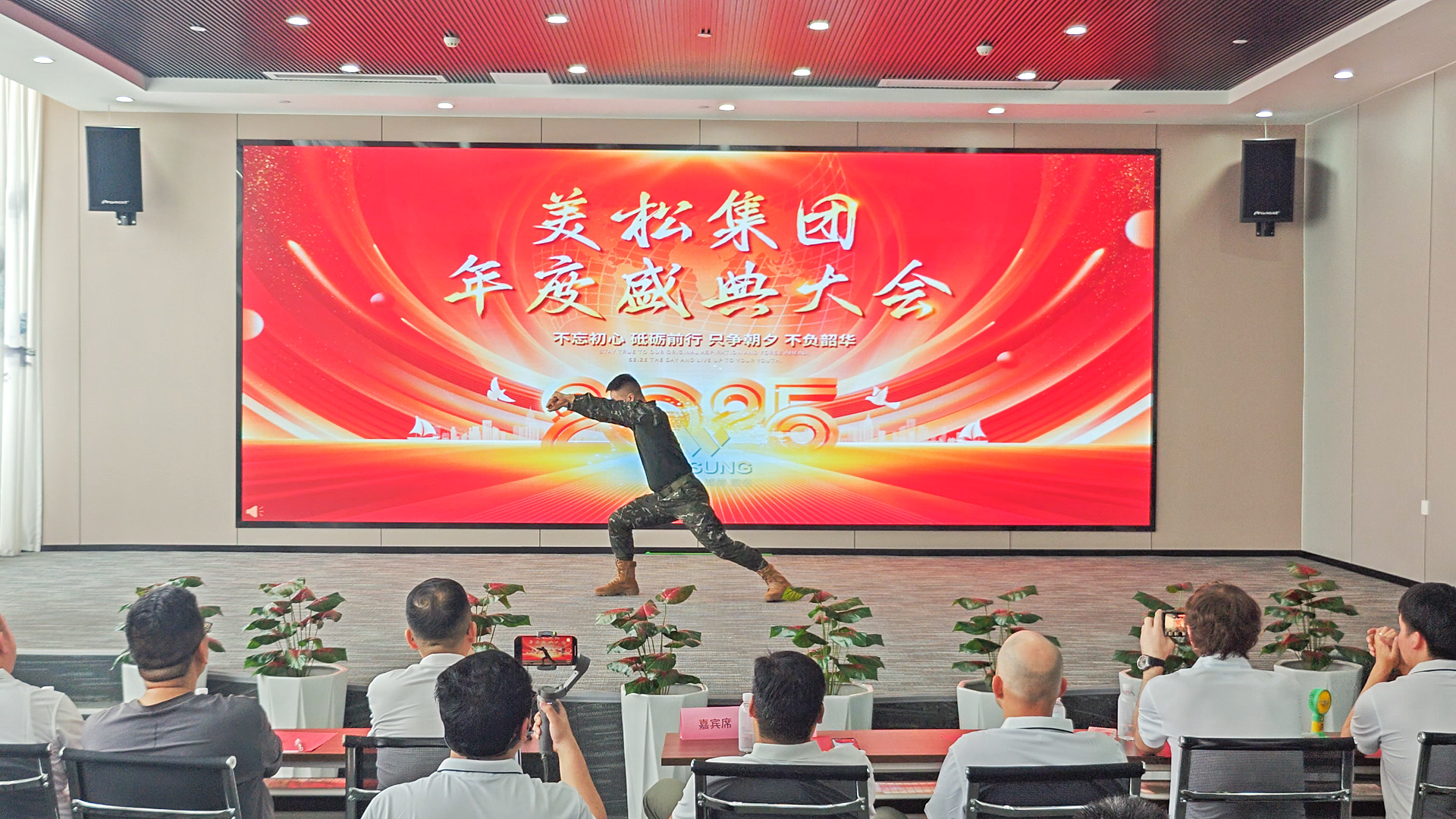 下午13:30,美松集团中试大楼一楼大堂签到处,美松人井然有序签到并获得纪念品的同时有序入场就座,迎接今天的特殊环节-美松集团2025年度盛典大会.