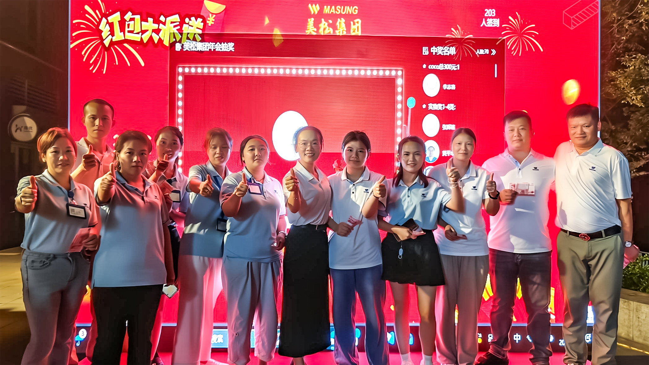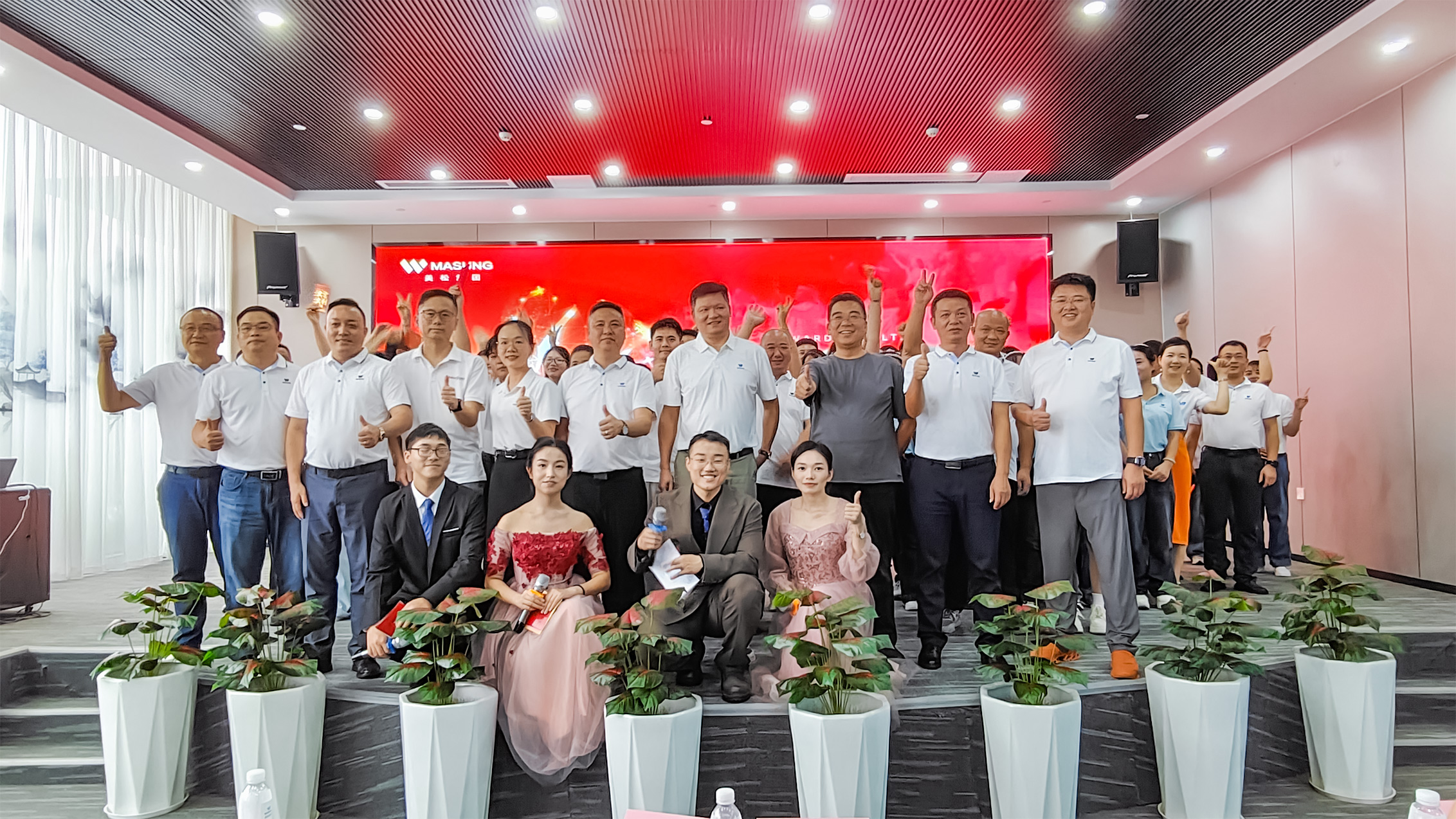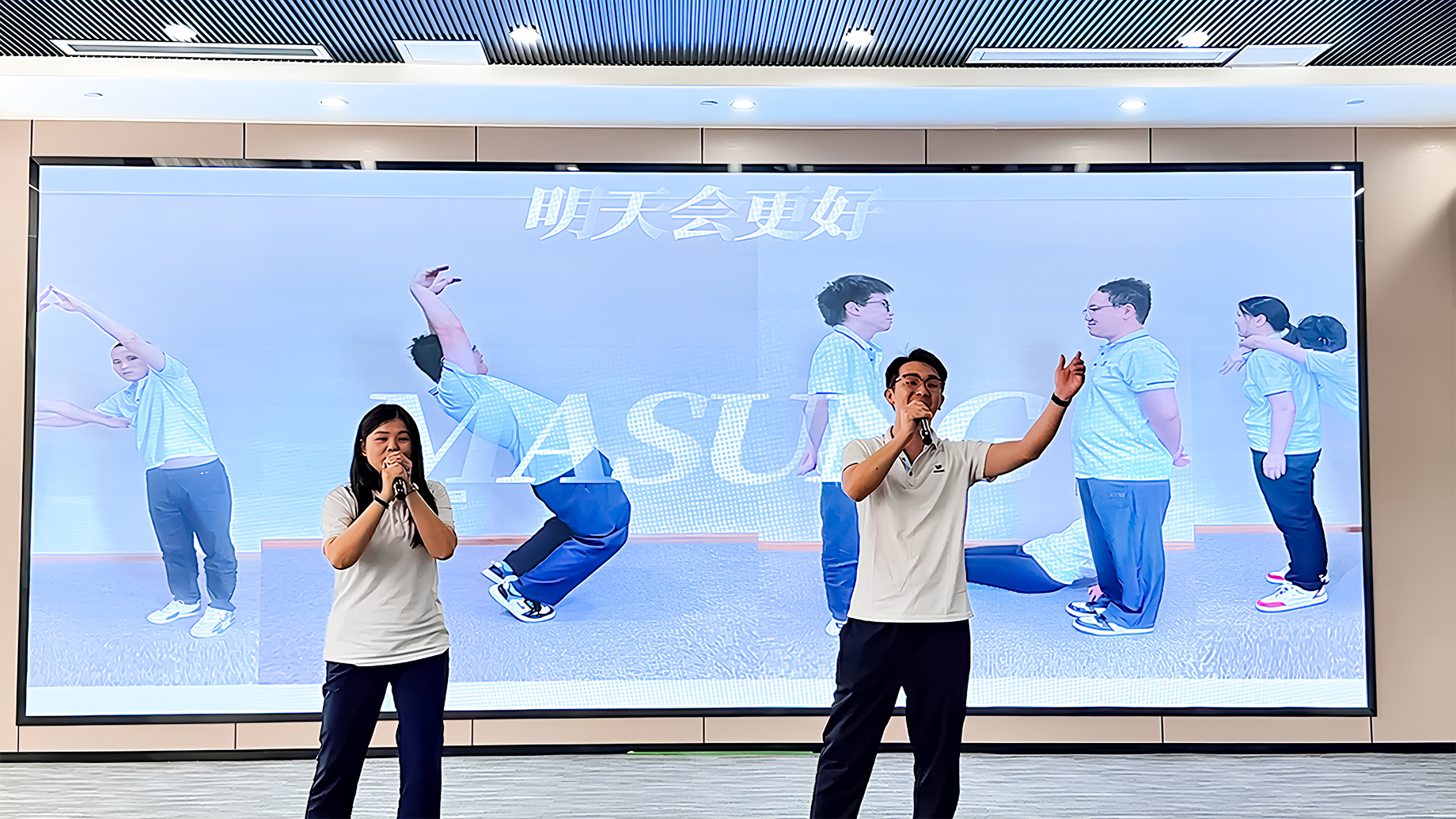 整场节目表演活动都以“成长”为主线,贯穿美松个人成长、美松组织成长与打印机行业成长三位一体,强调“专业、创新、诚信、服务”的美松价值文化。璀璨舞台上,一场跨越时空的视听盛宴《无价烙印与美松传承》-以负责人coco的身份独白故事展开的一部震撼的宣传片,通过光影交织的镜头语言,带领观众穿越美松的成长历程,19年的风雨路程提醒着我们,真正的传承不是停留在口号,而是在每一天的细微行动中继续前行。无论是资深老员工,还是新加入的同事,都将在一起,把梦想变成可感知的现实。以“恒进”的步伐,致敬那些日常里追求极致的人;以坚定的信念,迎接每一个新的挑战;因为只要我们同心,必将勾勒出“匠心铸就信赖”的美松品牌内核:明天会更好!随着音乐的响起,全体美松人都加入了和声,歌声中既有对过往合作的感恩,也有对未来共赢的期许.“让我们的笑容充满着青春的骄傲,为明天献出虔诚的祈祷!”大屏幕同步播放员工们自发用人体艺术形式展示的“masung”logo珍贵影像,将现场氛围推向高潮。这不仅是一场艺术盛宴,更是美松人对美松的深情告白:“无价烙印”象征着每个美松人与美松的深厚情谊;“美松传承”寓意着未来携手共进的坚定承诺。而“无价烙印与美松传承”更是我们美松打印人的合作价值与美松精神。