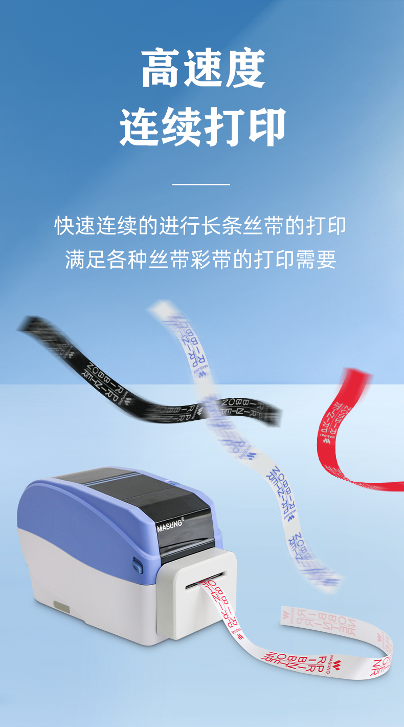 ms-1740c_桌面式丝带打印机是由美松自主研发的一款丝带彩带飘带打印机,ms-1740c的宽度为最小26mm,最大宽度为54mm,可适用的丝带彩带范围广泛,应用于礼物包装丝带,节日活动丝带等领域,ms-1740c带有自动切刀,可进行彩带和丝带的快速切割,切刀更快且无残留